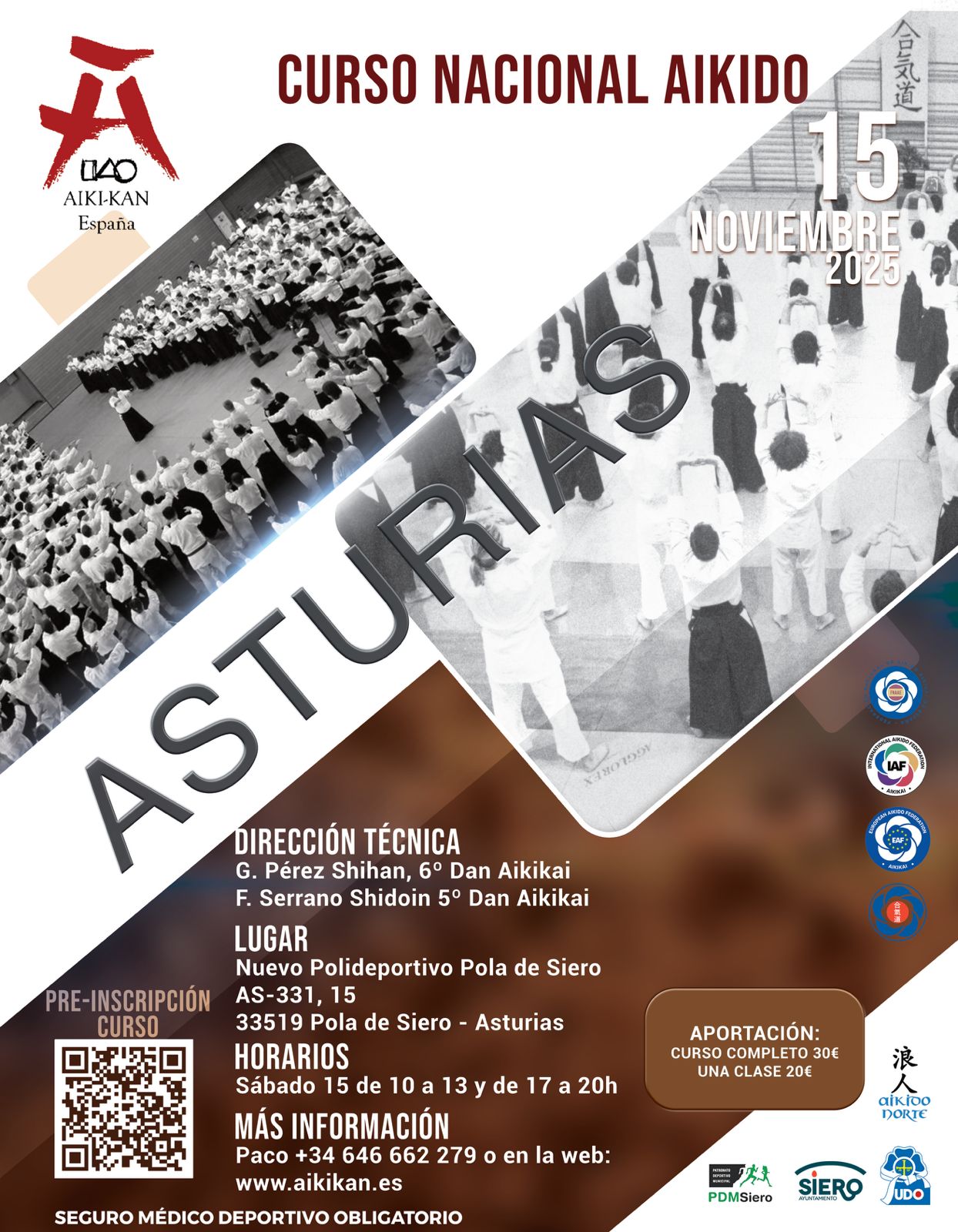 Es condición sine qua non para la asistencia al curso, tener un seguro médico deportivo en vigor para poder participar.